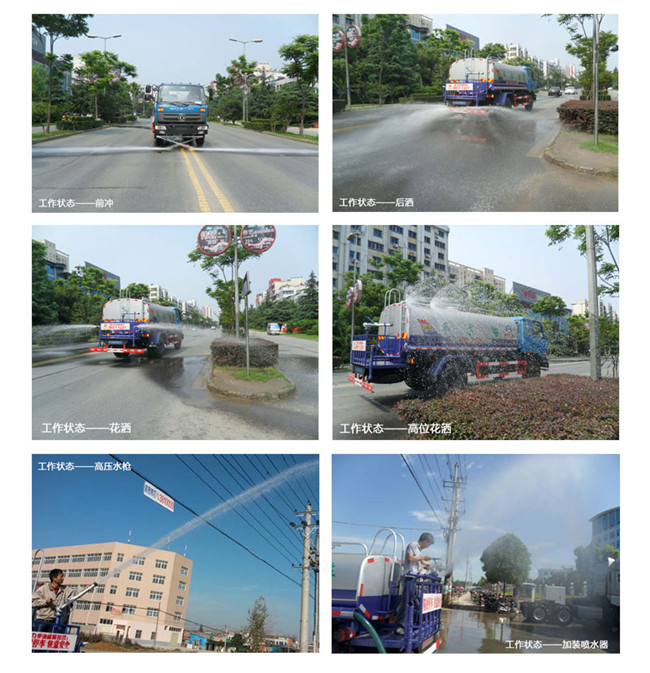 | 洒水装置 | 前冲,后洒,侧喷,高配,后工作平台。 射程宽度:≥16米 |